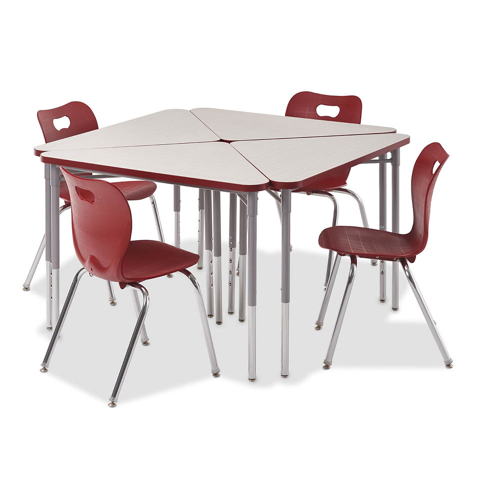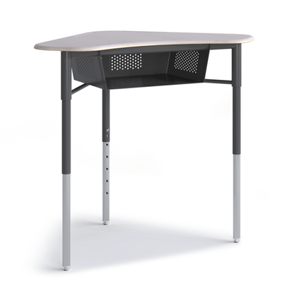 The Alumni Boomerang Desk was developed for traditional and modern teaching styles to help implement 21st Century Learning concepts in the classroom. Students can sit at the Boomerang Desk in front-facing or left- or right-handed tablet style. Optional casters make these desks easy to pull apart for individual study and testing purposes or to move into multiple group configurations. In its ideal group configuration of four, these desks fit together without wasted space in the center. They can be rearranged to maximize the use of limited space commonly observed in today’s classrooms. Full-frame construction takes the wiggle out of learning.